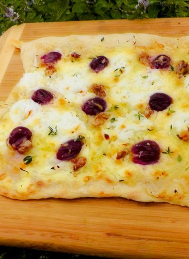 Flammkuchen mit Ziegenkäse, Traube und Walnuss